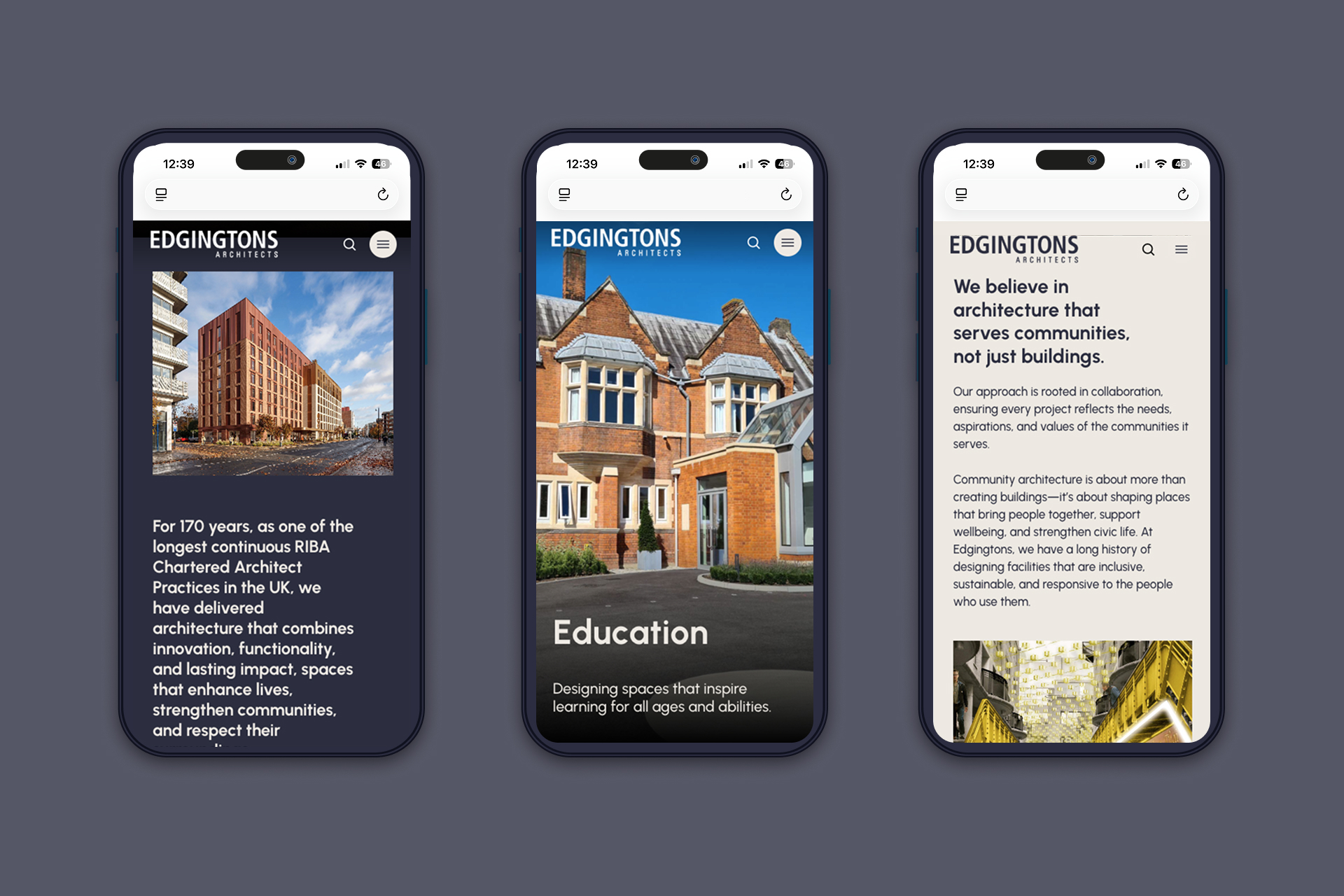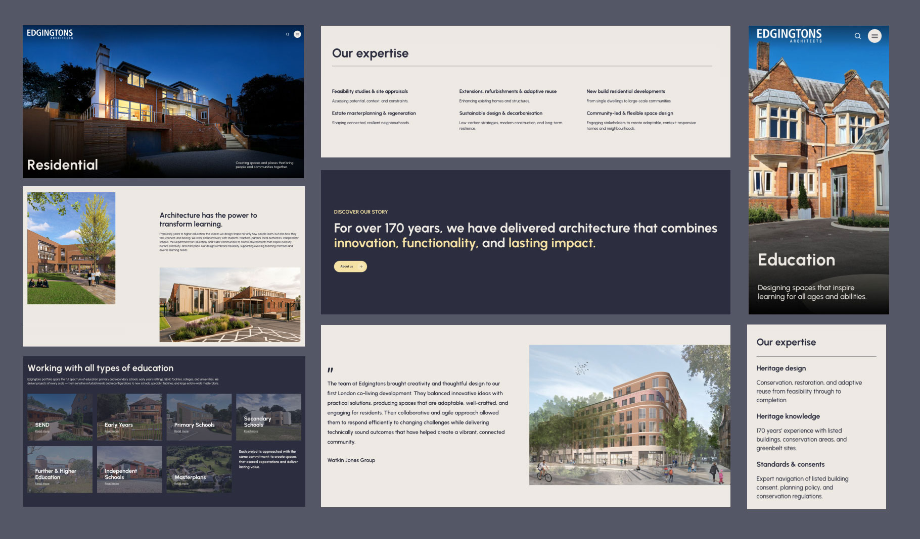 From the kick-off meeting to the launch, we worked together with Edgingtons online and in-person to bring this new website to life within a time-sensitive delivery schedule. The digital transformation began with a thorough review of the information architecture, fine-tuning project-sector categories and services pages.